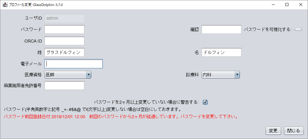 パスワードを2ヶ月変更していない場合、警告画面が表示されます。
