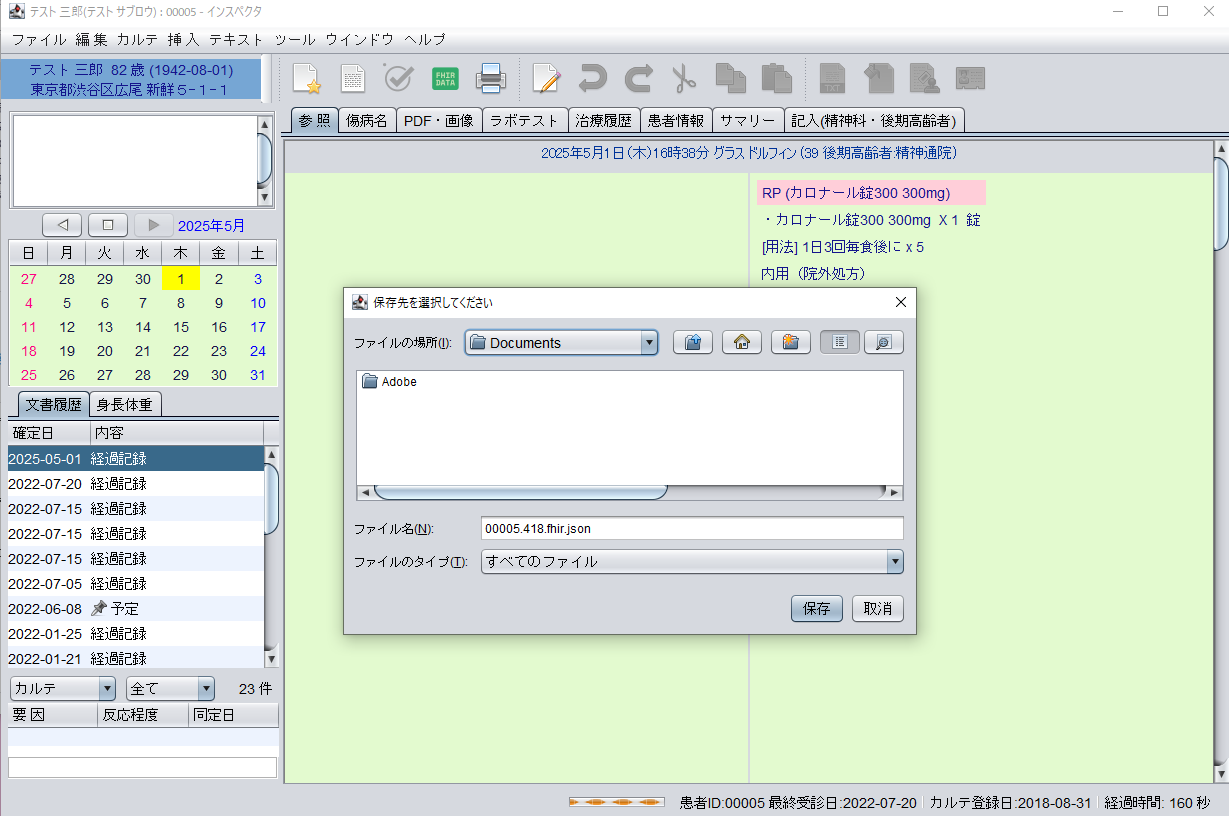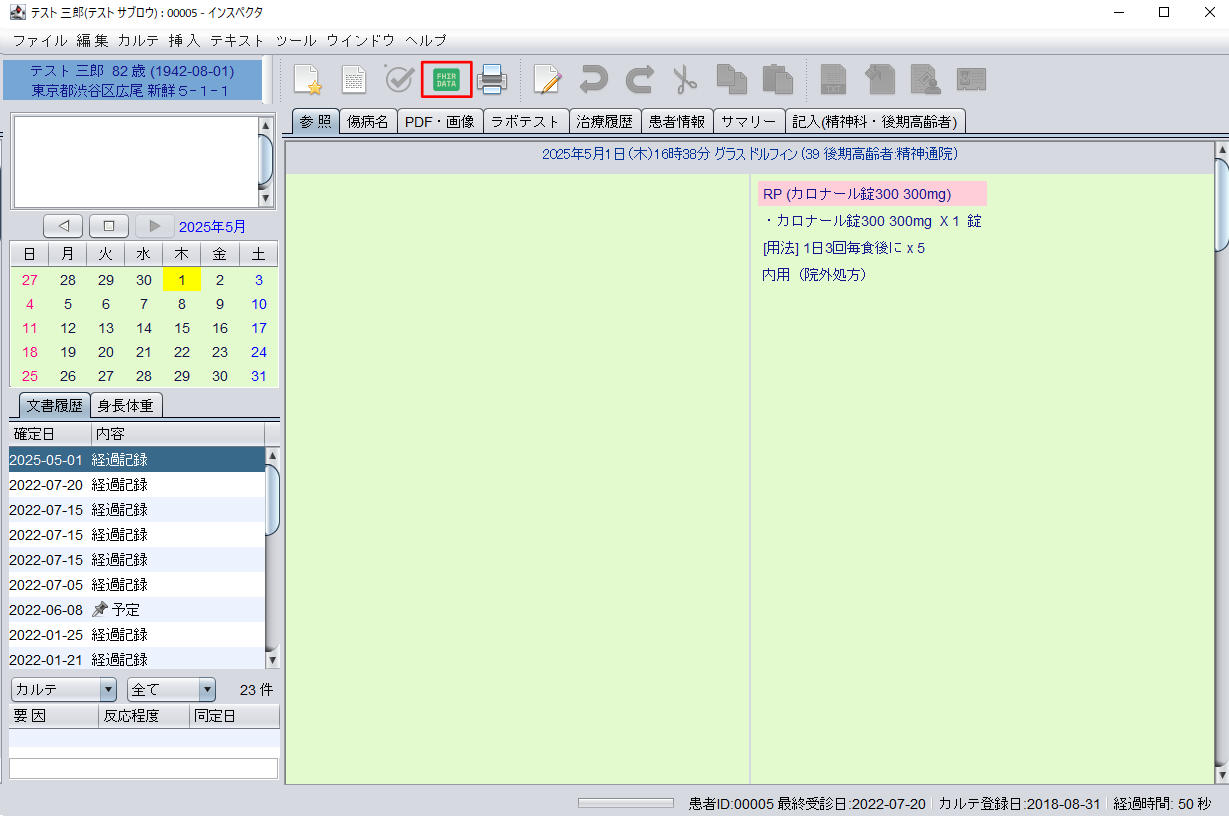 対象のカルテを開き[FHIRDATA]ボタンを押下します。